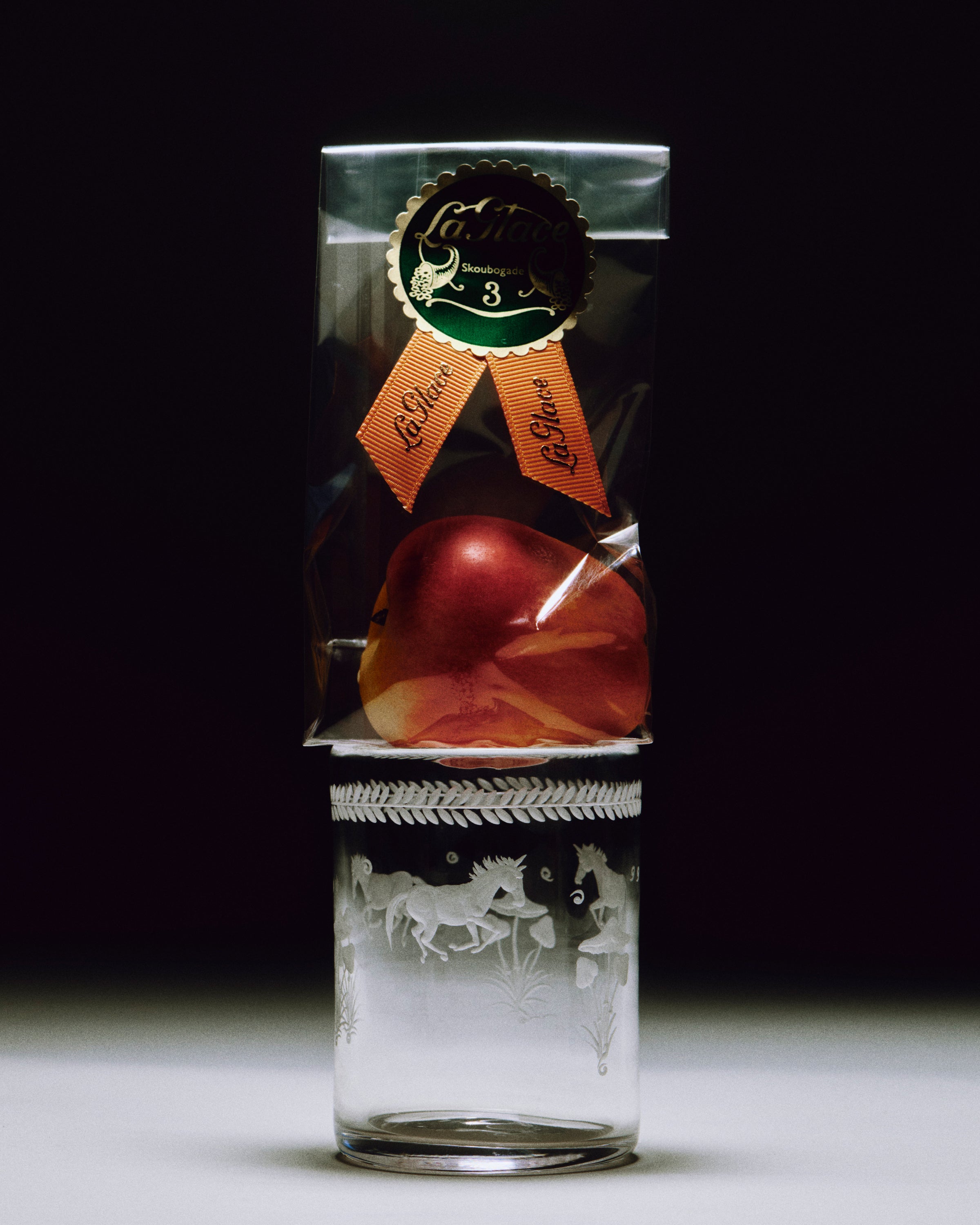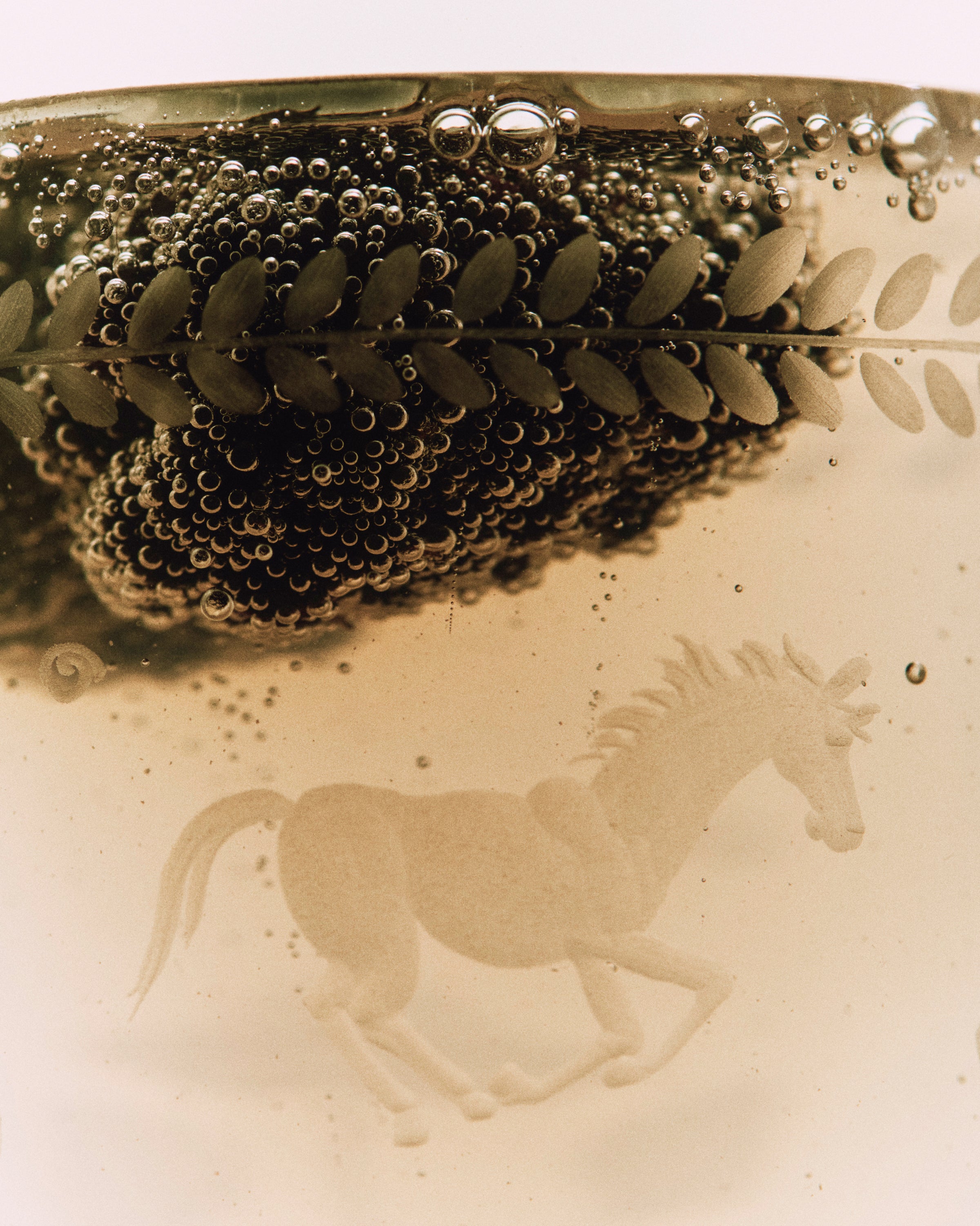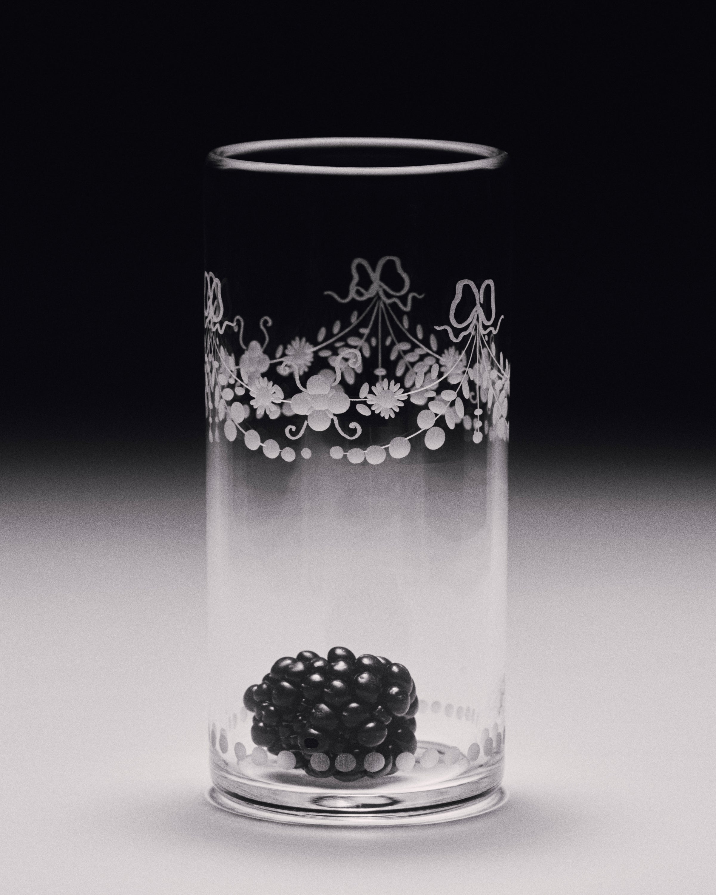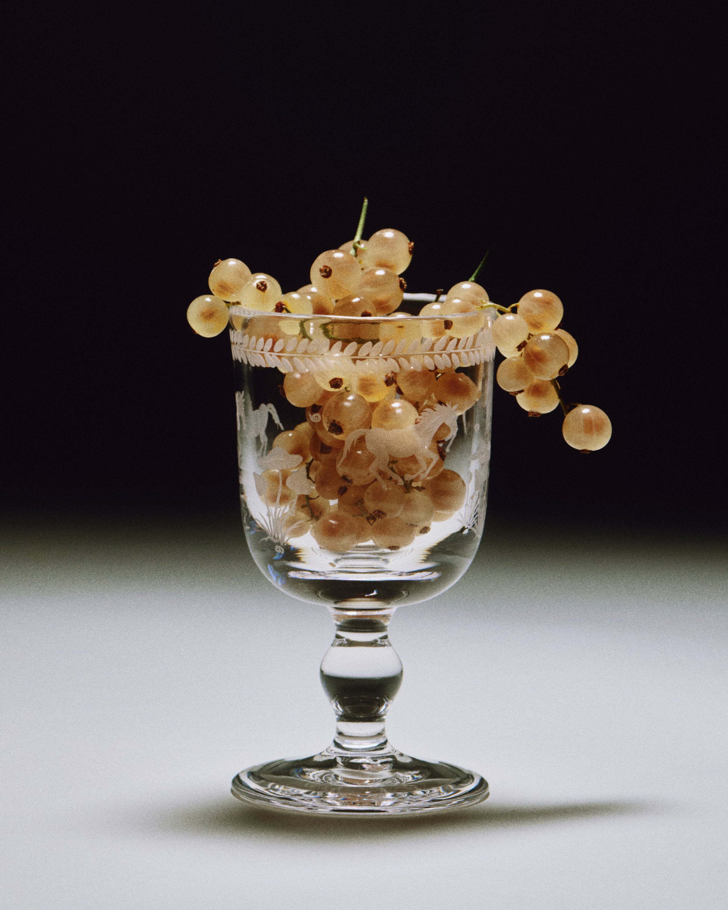 The Barbro glasses celebrate the elegance of the classical souvenir glass while embracing a contemporary design with a squared cup and sculptural stem. Each piece is patiently engraved by the hand of a master, possessing its own poetic character. The motifs are hand-sketched by Akua Objects, reflecting their design philosophy. The bow motif symbolizes unity, enriched with Art Deco inspired engravings, while the playful depictions of mushroom, flowers and horses celebrate the beauty of nature, the freedom of galloping and Annika's horse-filled childhood.