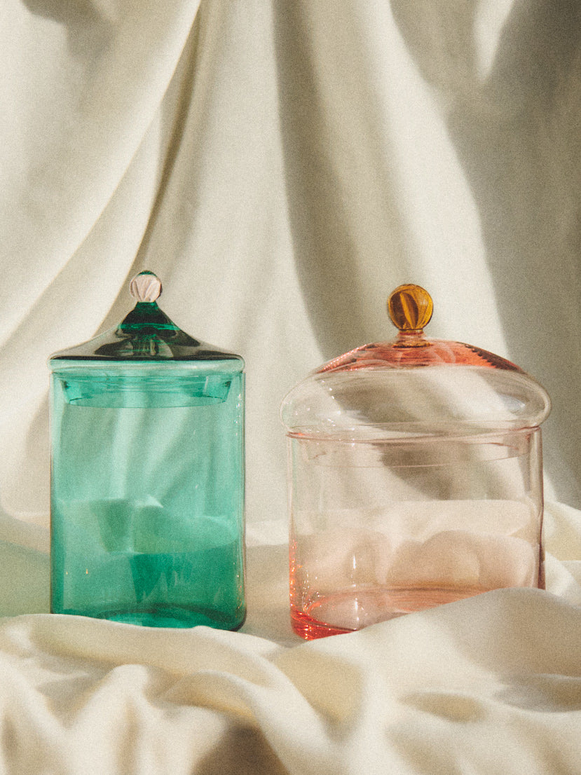 Delicately composed of three pieces of glass, the glasses are mouth-blown and handmade by the same artisanal glass blowers as the Alban collection.