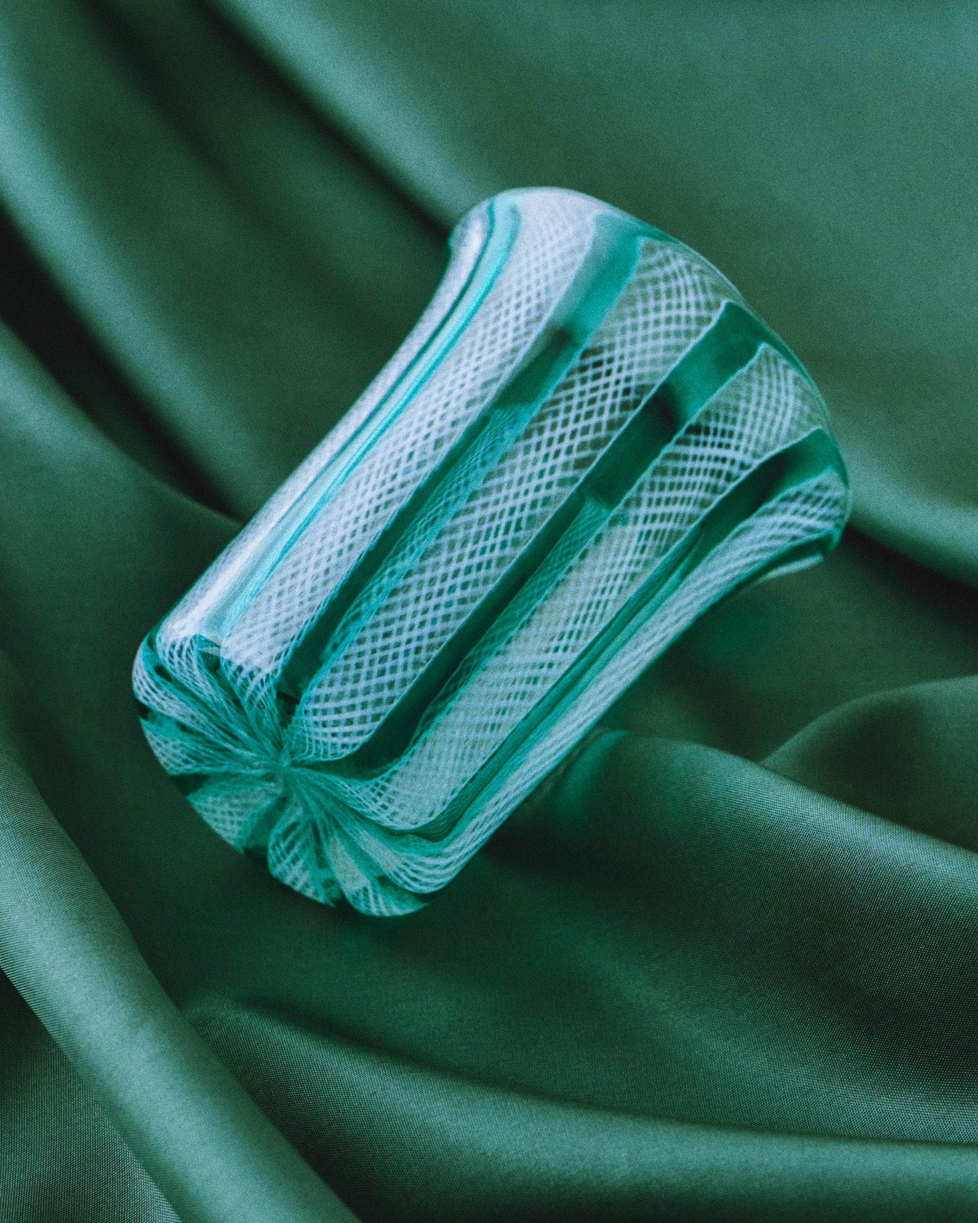 Each glass draws inspiration from mid-century lacework, crafted with filigrana canes that capture the delicate silhouettes and shifting patterns of woven lace. The color palette reflects Clara’s favorite season - autumn - expressed through opalescent tones of warm amethyst, smoldering orange, deep oceanic turquoise, and rich moss green.